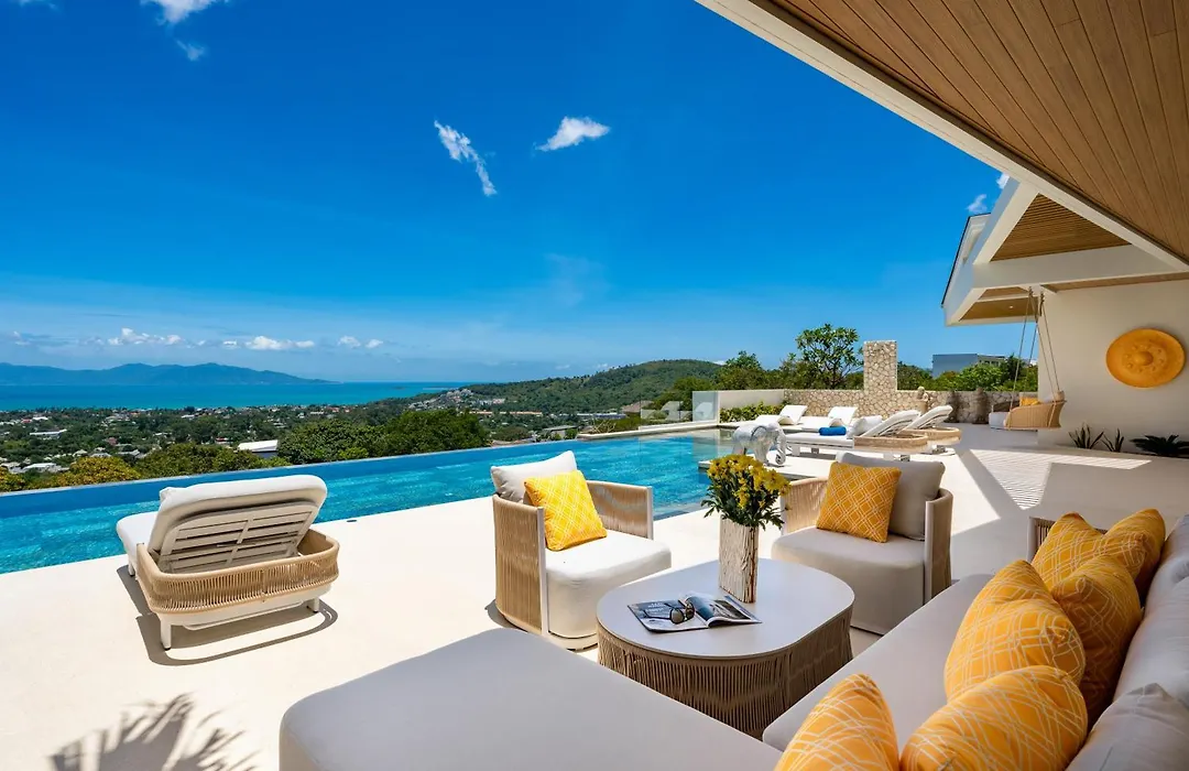 Bow Villa - By Sublime Samui Villas biedt een kust uitzicht over de zee vanaf een terras. De villa beschikt over een badkamer met een inloopdouche en een apart toilet. De badkamers hebben ook een haardroger, kamerjassen en handdoeken voor extra comfort.
